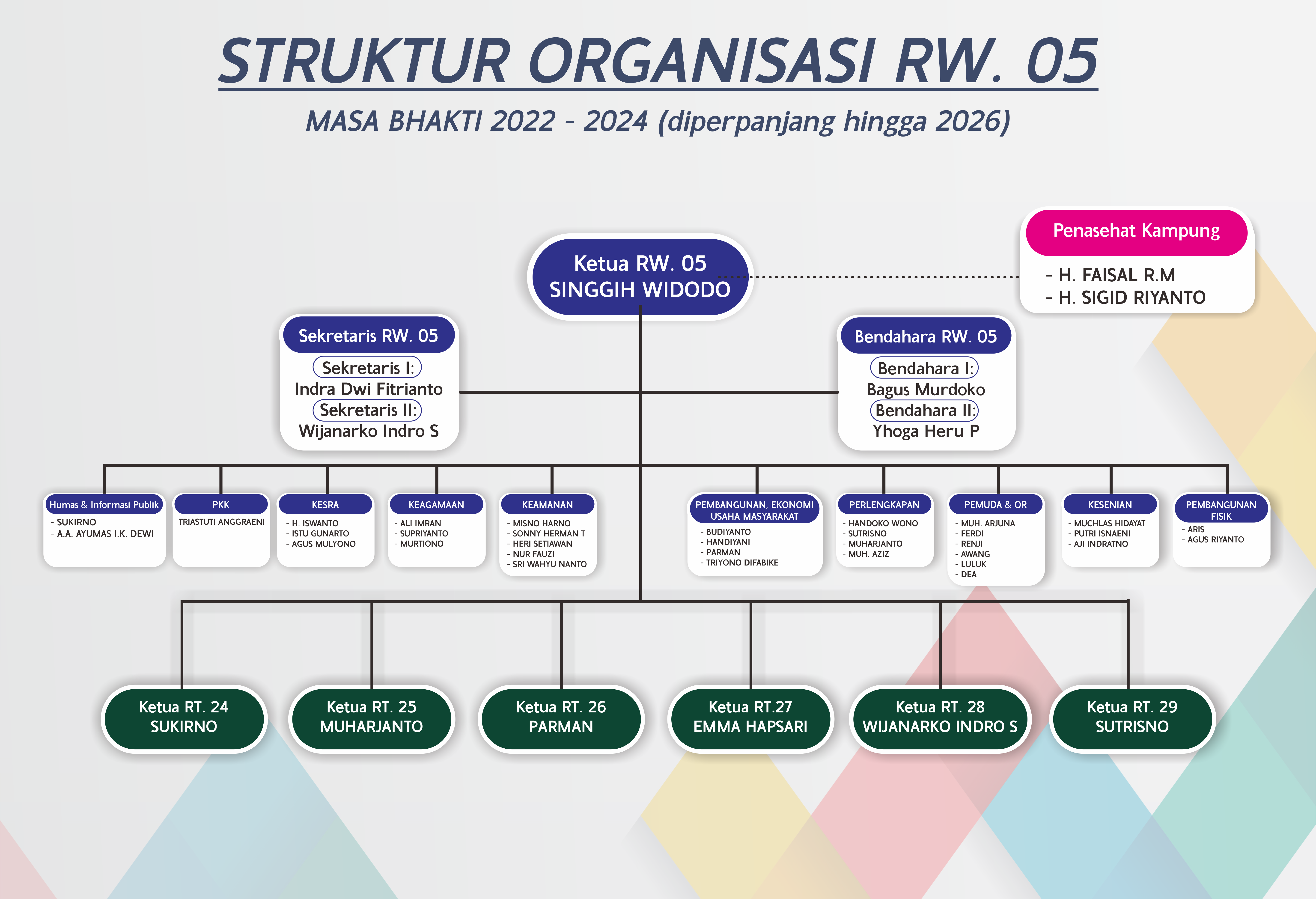 Pengurus Rukun Warga (RW) 05 Kelurahan Patangpuluhan, Kemantren Wirobrajan, Kota Yogyakarta periode 2022 - 2024, dengan susunan sebagai berikut